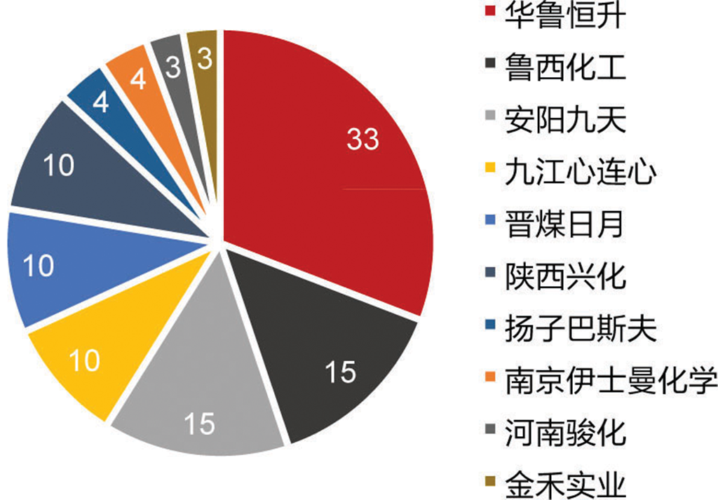 相對于甲醇和醋酸,DMF由于體量小,供需格局也更好,2021年全年基本都在高位運行。經歷了多年沒有新增玩家的黃金時期,DMF行業由于近兩年的高盈利也拉動了新玩家的進入。心連心在九江基地規劃了30萬噸/年項目,其中一期10萬噸/年項目去年已投產;金禾實業3萬噸/年配套自身三氯蔗糖的產能也已投產;魯西化工規劃了20萬噸/年新增產能,有望于2023年投產;華魯恒升荊州基地15萬噸/年新產能也有望于2023年下半年建成。整體而言,DMF供給已迎來寬松,行業暴利的光景恐難以重現。