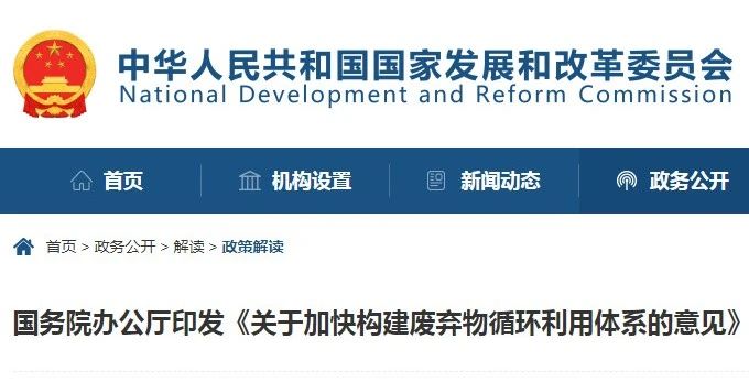國務院辦公廳印發《關于加快構建廢棄物循環利用體系的意見》(附政策解讀)