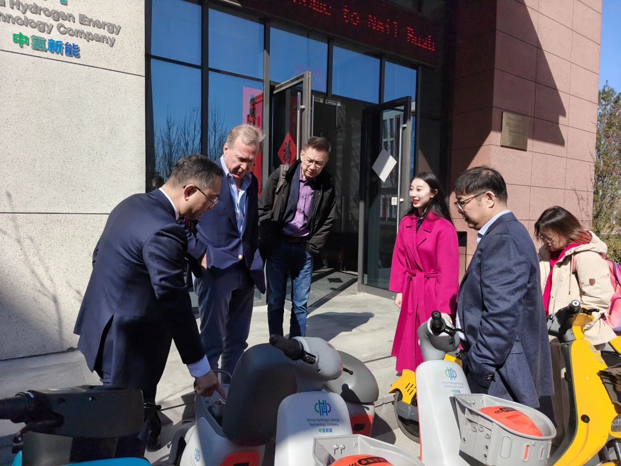 尼爾·布什先生還觀摩了氫能二輪電動車使用方法,對公司在氫能二輪、三輪以及觀光車等綠色出行產品的技術應用和市場前景表示高度認可。尼爾·布什表示,八十年代的中國被稱為“自行車王國”,自己的父親老布什在駐華期間也熱衷騎行,融入體會中國的風土人情,被譽為”自行車大使“。希望中國未來可以生產出更加輕便、綠色的氫能自行車,為世界經濟脫碳注入動能,也希望自己可以做”中國氫能自行車“首席形象代言人。
