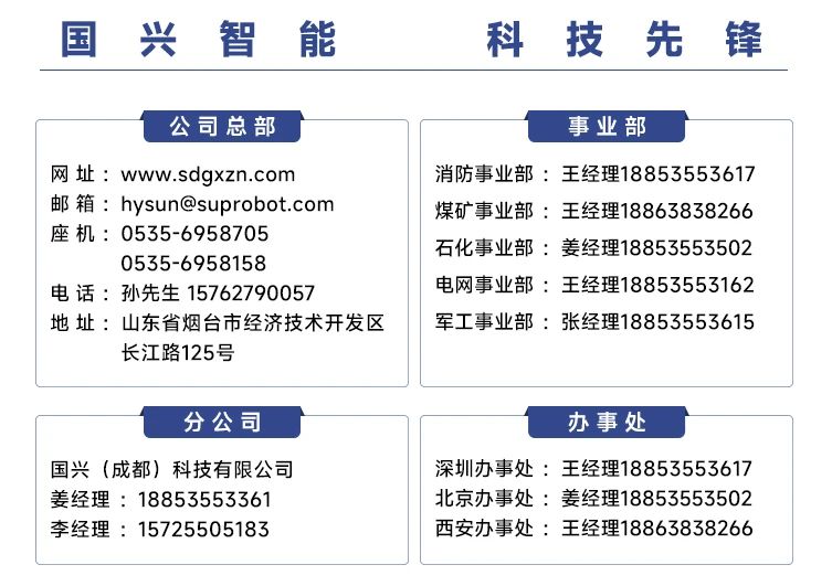共同價值觀是維系長久合作的關鍵要素,讓更多的企業加入應急救援領域,讓更多的同行同仁感受到凝聚力,國興智能愿意身先士卒,行穩致遠。如果您也希望與國興智能并肩前行,我們將誠摯歡迎,歡迎點擊撥打0535-6958705