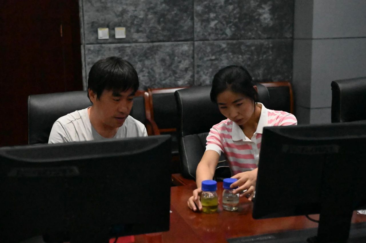 圖為技術專家講解低能耗二氧化碳捕集技術