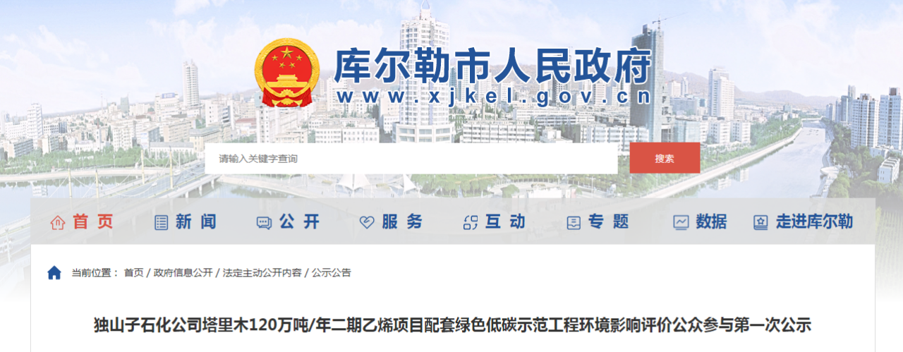 獨山子石化120萬噸/年乙烯項目環評第一次公示