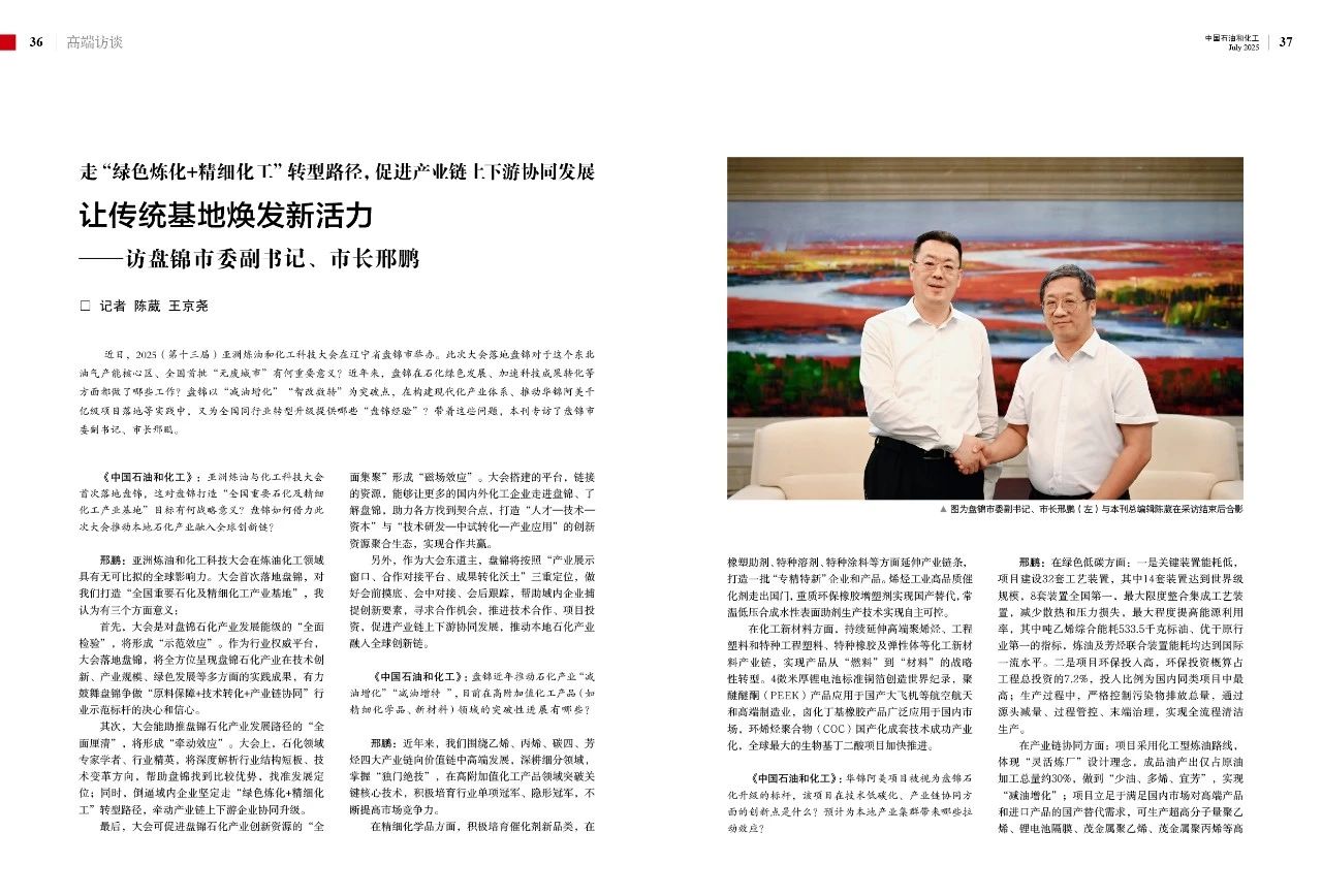 《中國石油和化工》:作為全國首批“無廢城市”,盤錦在綠色石化發展方面有哪些可推廣的經驗?