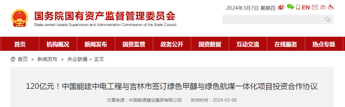 總投資120億元!綠色甲醇與綠色航煤一體化項目將落戶吉林
